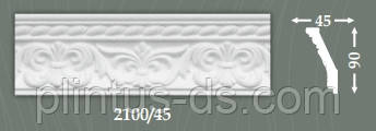 Плінтус стельовий інжекційний, гармонійно впишуться в інтер'єр кімнат, , розмір плінтуса 45х90х2000мм.